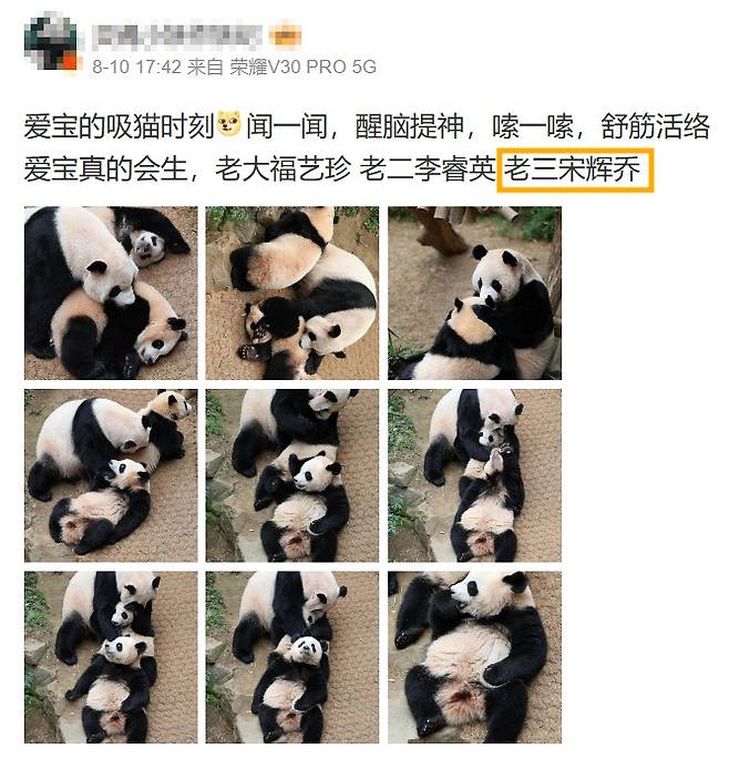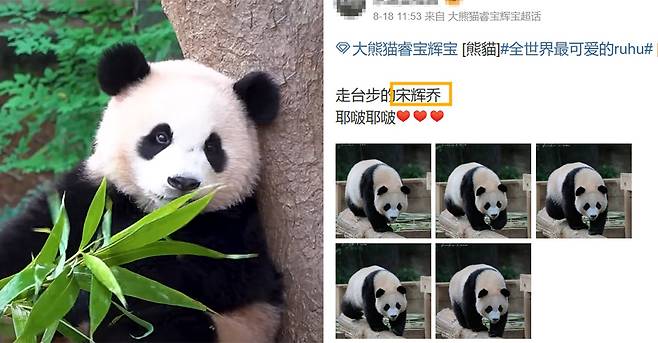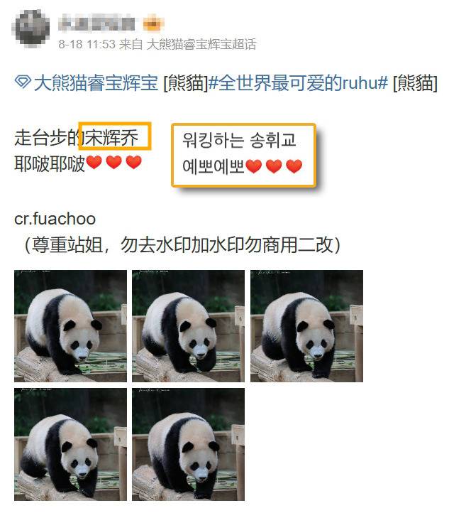 판다들을 사랑해 분위기에 어울리는 유명 배우들의 이름을 찾아 붙여준 팬들의 마음이 참 따듯합니다. 미모의 판다 후이바오의 새 별명 '송휘교'! 너무 귀여운 별명인 것 같네요.