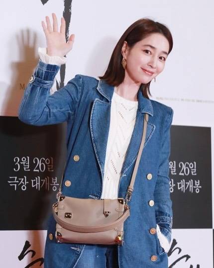배우 이민정이 영화 시사회장에서 스타일리시한 데님 재킷 패션을 선보이고 있다. 더블 버튼 디테일이 돋보이는 미디 길이의 데님 재킷에 화이트 니트 톱을 매치해 클래식하면서도 세련된 분위기를 연출하고 있다. 베이지 컬러의 미니 숄더백을 크로스로 매치해 캐주얼한 감각을 더했으며, 자연스러운 미디엄 헤어 스타일과 함께 밝은 미소로 현장을 빛내고 있다. 특히 3월 26일 국내 개봉을 앞둔 작품의 홍보 현장에서 손을 들어 인사하는 모습에서 친근한 매력을 발산하고 있다.