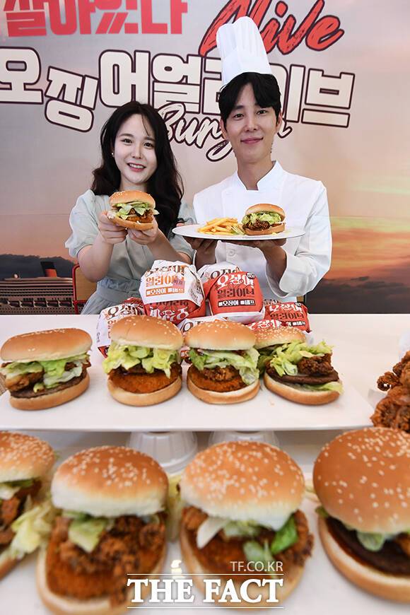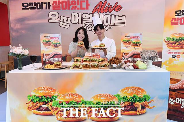 이와 함께 육 패티 선호 고객을 위해 오징어 패티 대신 비프 패티에 오징어 다리 튀김을 올린 '오징어 얼라이브 비프 버거' 2종도 함께 출시했다.