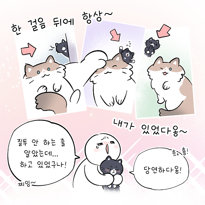 😿고양이 질투? 한 걸음 뒤엔 내가 항상 있었다옹!