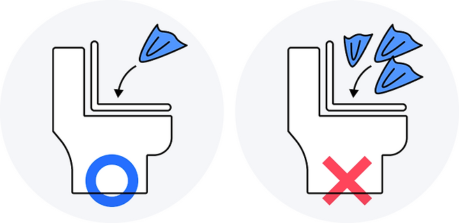 특히 비데 물티슈는 일반 휴지에 비해 두께감이 있고, 상대적으로 더 안 풀리고 안 녹기 때문에 사용할 때는 반드시 1~2장 이내로만 변기에 버려야 합니다.