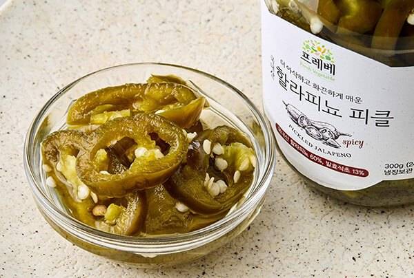 ‘프레베 국내산 할라피뇨 피클’은 프레베에서 계약 재배한 국산 할라피뇨로 만든 제품이다. 수확하자마자 피클로 만들어, 할라피뇨 본연의 신선한 풍미와 아삭한 식감을 살렸다. 할라피뇨는 무르지 않고 단단해서 아삭한 식감이 살아있다. 화끈하고 얼얼하면서도 끝맛이 개운한 편이기에, 튀김이나 파스타 같은 음식에 곁들여서 먹기에 좋다. 300g의 피클이 담긴 한 병의 판매가는 9,800원이다.