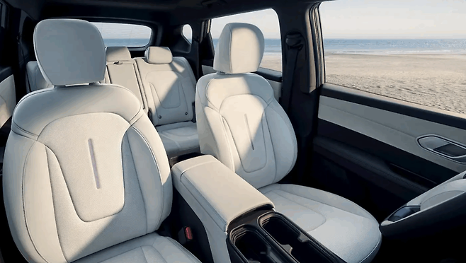 스티어링 휠은 3스포크 디자인이며 변속은 스티어링 칼럼에 위치한 레버로 조작한다. 비상등을 제외한 거의 모든 물리 버튼은 제거됐고, 컵홀더와 무선 듀얼 스마트폰 충전기처럼 실용성을 강조한 디테일이 눈에 띈다.