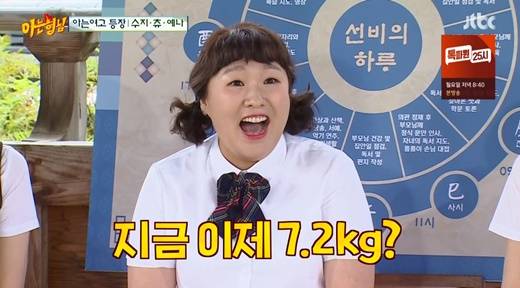 특히 이수지가 "딸이 지금 7.2kg다"라고 하자 제작진 역시 크게 놀랐다. 그는 머쓱해하며 "또래들에 비해 많이 나간다. 정상 체중에서 점점 엄마를 닮아간다"라고 강조했다.