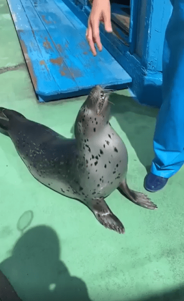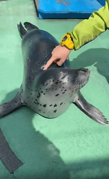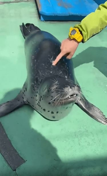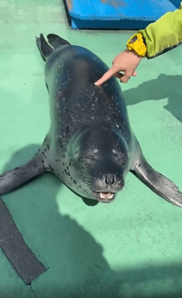 장난기 섞인 터치에 정확히 반응하는 초절정 귀여움, 물범과 인간의 호흡이 만들어낸 미니 코미디