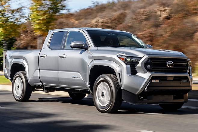 중형 픽업트럭 시장의 절대 강자 토요타 타코마가 33,740달러의 시작 가격으로 3위다. 새로운 세대로 완전히 거듭나며 디자인과 기술 사양이 대폭 업그레이드되었음에도 여전히 경쟁력 있는 가격을 유지했다. 타코마는 높은 잔존 가치와 토요타 특유의 압도적인 신뢰성으로 유명하며, 시작 모델인 'SR' 트림은 터보 4기통 엔진을 탑재하고 있다.