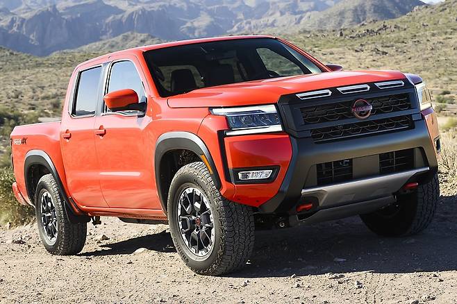 닛산 프론티어가 33,845달러로 4위다. 프론티어는 현대적인 디자인으로 변신하는 동시에, 동급 중형 트럭에서 가장 강력한 표준 V6 엔진(310마력)을 제공하는 것이 최대 강점이다. 가장 저렴한 엔트리 모델은 '킹캡 S 4x2' 구성이며, 내구성이 뛰어난 전통적인 바디 온 프레임 구조를 유지하고 있어 험한 작업 환경에서도 신뢰성이 높다.