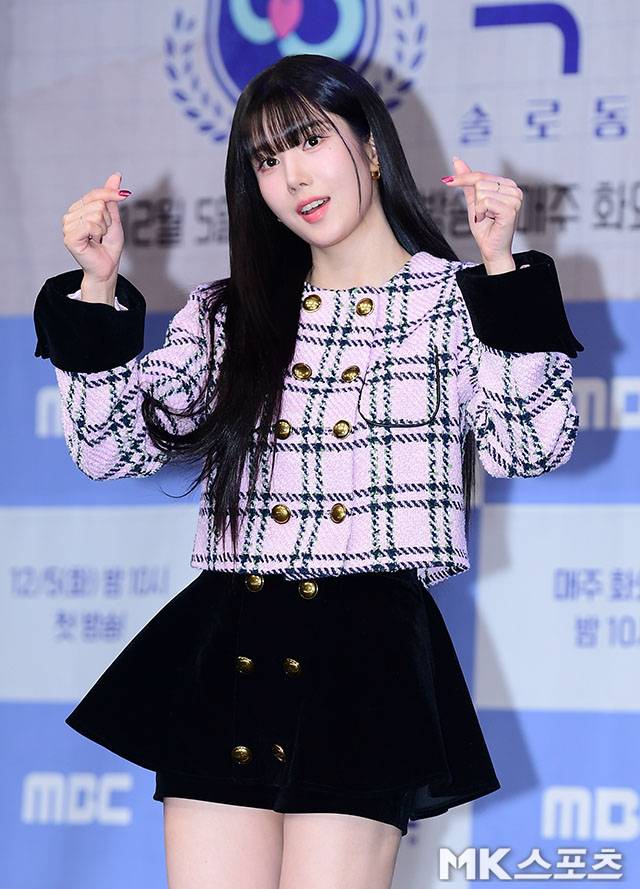 가수 권은비가 5일 오후 서울 마포구 상암MBC 골든마우스홀에서 진행된 MBC 새 예능 <솔로 동창회 학연> 제작발표회에 참석했습니다.