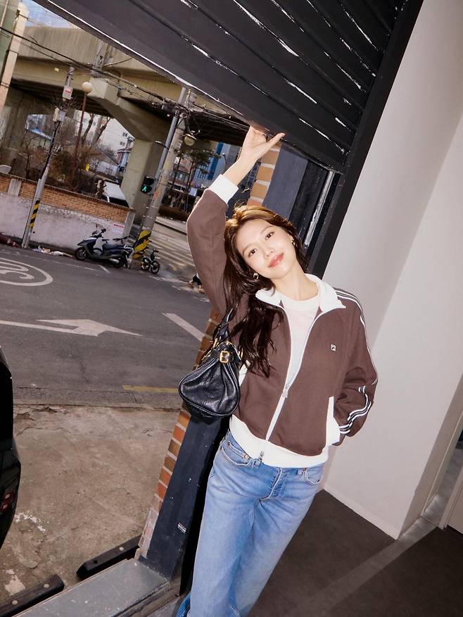 계절을 앞서가는 가벼운 아우터 선택은 그녀의 세련된 감각을 여실히 보여줍니다.