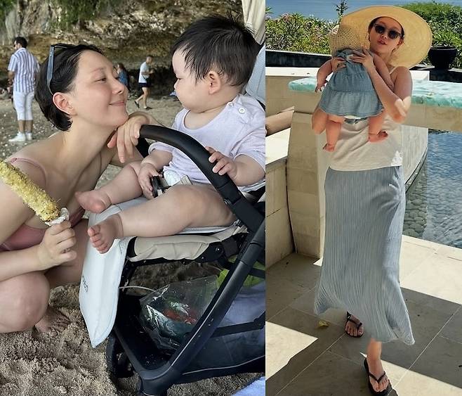 와이드 햇·선글라스로 세련된 리조트 스타일을 완성했고, 플로럴 원피스로 아기와 커플룩을 맞춰 로맨틱함을 더했습니다.