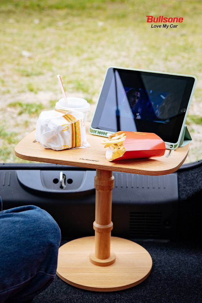 불스원이 차 안에서는 물론 야외에서도 언제 어디서나 간편하게 사용 가능한 자동차용 우드 테이블을 선보였다.