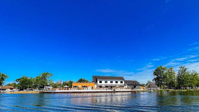 또 리조트에는 자체 플래그십 스토어가 있습니다. 방문객은 이곳에서 식품, 커피, 아이스크림을 구매하는 것 외에도 자전거, 패들보드, 카약, 카누, 수상 바이크를 빌릴 수 있습니다.
