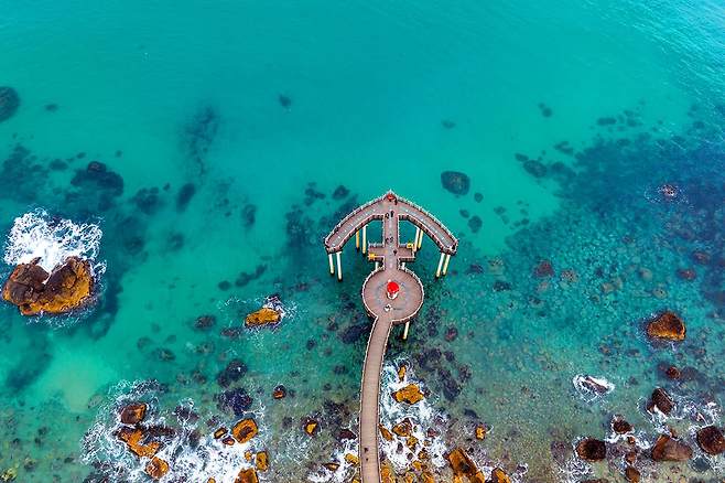 약 170m 길이의 보릿돌교는 포항 바다 위에 카펫처럼 깔려 있어 마치 바다 위에 떠 있는 듯한 기분이 들게 합니다. 그리고 바다와 가장 가까운 곳에서 보릿돌을 볼 수 있습니다.