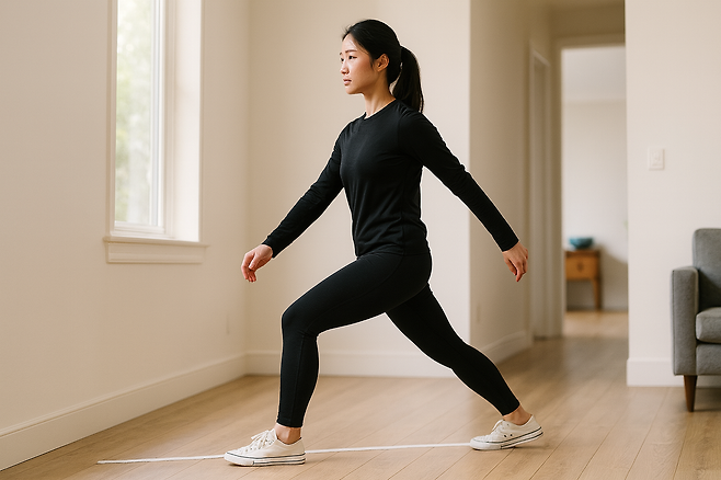 • 매일 : 한 발 서기 20~40초×양쪽 2회(싱크대·벽을 가볍게 짚고 시작).