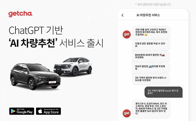 신차 구매 플랫폼 겟차가 챗GPT 기반 AI 차량추천 서비스를 출시했다고 27일 밝혔다.