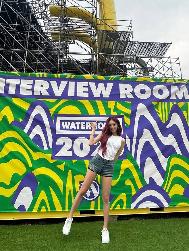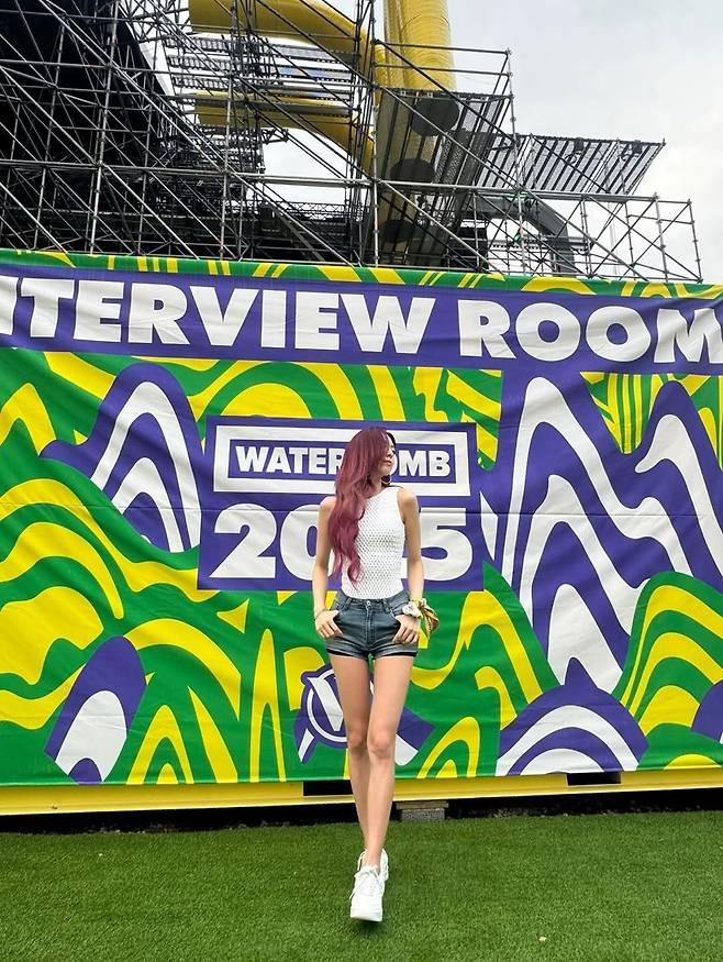 워터밤 2025 현장에서 있지(ITZY) 유나가 선보인 썸머 페스티벌룩이 단연 눈길을 끌고 있다. 화려한 배경 앞에서 당당한 포즈를 취한 유나는 군더더기 없는 실루엣과 감각적인 아이템 선택으로 독보적인 존재감을 드러냈다.