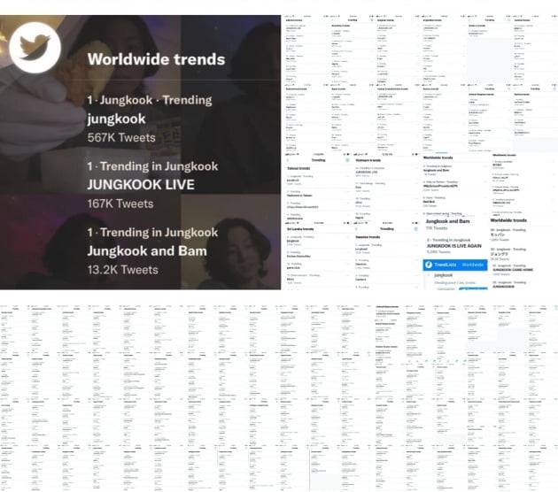 더불어 소셜미디어(SNS) 트위터에서는 정국 관련 키워드 'jungkook', 'Jungkook and Bam', 'JUNGKOOK LIVE', '치킨 먹방' 등이 월드와이드(전세계) 트렌드 1위를 비롯해 88개 국가 실시간 트렌드에 올랐다.