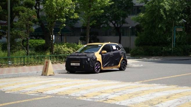 기아가 개발 중인 경차 모닝의 2차 페이스리프트(F/L) 모델이 포착됐다. 그간 없었던 상큼한 색상이 눈길을 사로잡는다.