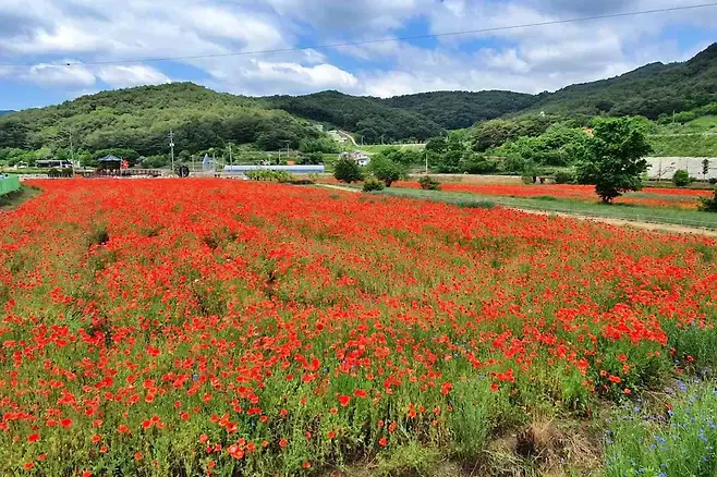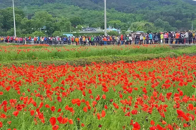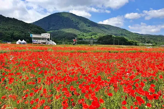 해마다 짧은 기간 동안만 열리는 봄꽃 향연. 붉은 양귀비가 끝없이 이어지는 북천 꽃밭에서, 놓치면 1년을 기다려야 하는 봄의 절정을 마주하길 바란다.