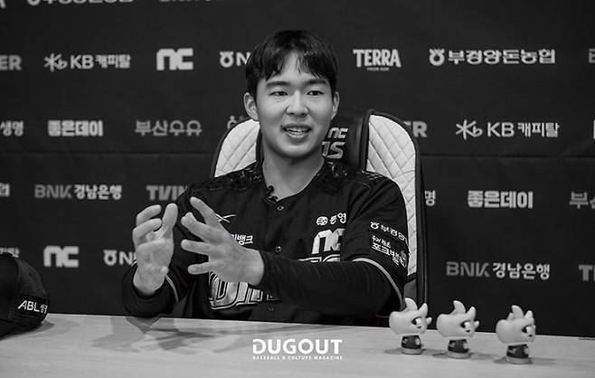 라이온즈파크가 워낙 응원 열기가 뜨거운 곳이다 보니 분위기가 재밌었어요. 삼성 응원가 중에 좋은 곡들도 많아서 따라 부르기도 하고 흥얼거리기도 하면서 현장을 즐겼습니다. 그리고 막상 플레이오프를 보니까 ‘NC가 이 무대에서 더 오래 시합을 치렀으면 좋았을 텐데’라는 생각도 들더라고요. 그래서 아쉬움도 짙게 느꼈어요. (예전에 수비하면서도 응원가를 부르는 장면이 화제가 됐잖아요. 응원석에서는 맘껏 불렀어요?) 사실 더 신나게 즐길 수도 있었지만, 선수로서의 품위 유지도 중요하기 때문에 흥이 지나치지 않는 선에서 응원가를 부르고 왔습니다. 우리가 이긴 다른 세계는 어땠을지 상상도 해 보고요.
