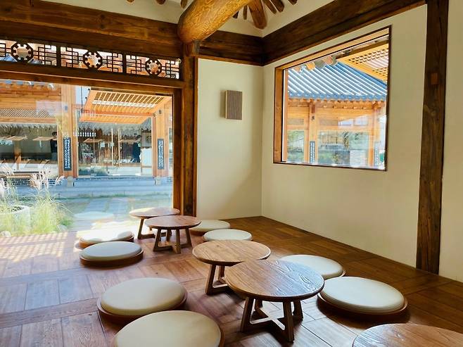 – 겉에서 보면 한옥 특유의 기와 지붕과 목조 기둥이 눈길을 사로잡고, 내부에 들어서면 우드 톤과 서까래 등 전통 요소가 조화롭게 어우러져 고즈넉하면서도 세련된 분위기를 자아내요.