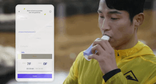 불로는 기기와 연동된 앱을 통해 사용자의 상태에 맞는 호흡 운동법을 추천합니다. 폐 질환자들의 재활을 위한 인스피로미터라는 재활운동 기구와 같은 기능입니다. 이인표 브레싱스 대표는 “앱에 표시되는 시간 동안 호흡을 이어가야 한다거나 두 번 내쉬고 한번 들이마시는 등 호흡 가이드라인을 따라 하면 호흡에 필요한 호흡근을 튼튼하게 만들 수 있다”며 “호흡근이 강화되면 폐활량이 늘어난다”고 설명했습니다. 이어 “두 달 사용할 경우 폐활량 평균 13.18%, 폐근력 평균 24.51% 상승 결과가 나왔다”고 했습니다.