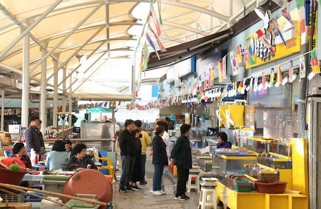 태안 앞바다에서 바로 잡아온 싱싱한 해산물을 판매하는 안면도 수산시장은 태안 세계튤립꽃박람회에서 차량으로 3~5분 거리에 위치해있어 튤립축제와 함께 방문하기 좋은 태안 가볼만한 곳입니다.