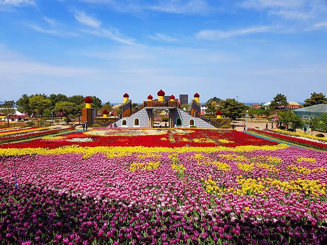 무려 3만 4,564평 규모의 부지에 약 260만송이의 튤립이 만발해 동화같은 모습이 펼쳐지는데요. 매년 튤립을 활용해 색다른 조경을 선보여 재방문율 또한 높습니다.
