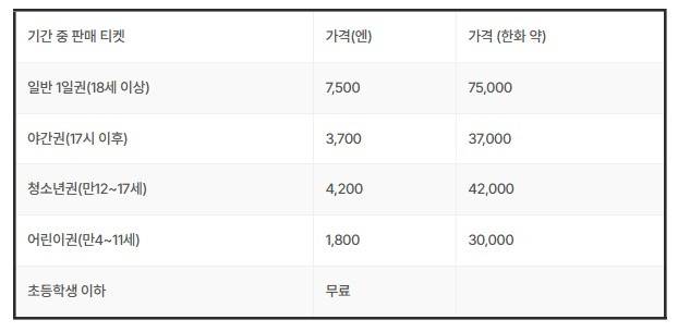 2025/4/13~10/3까지 매일 11시 이후에 입장 가능※1