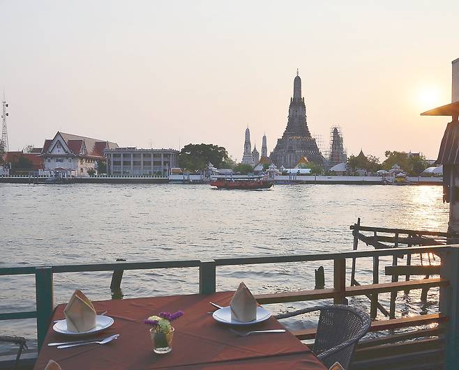 왓 아룬과 짜오프라야 강과 맛있는 음식의 완벽한 조화! 시간에 관계없이 훌륭한 조망을 선사한다. 실내 창가 좌석은 예약 필수!