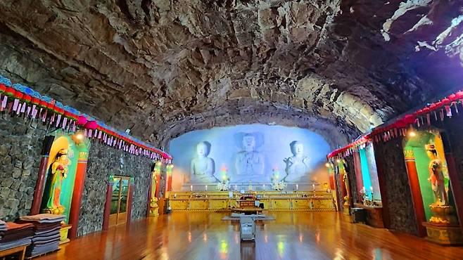 대웅전(455㎡)과 무량수전(297㎡)은 인위적인 건축물이 아닌, 실제 암벽을 깎아 만든 대규모 동굴법당입니다.