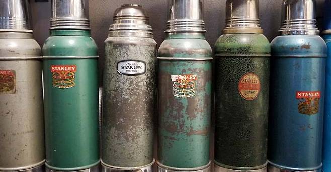스탠리 텀블러만큼 이미지 변신에 성공한 브랜드도 드물 것이다. 사실 스탠리는 1913년 창립 이후, 제2차 세계대전 당시 미군에 보온병을 납품하며 성장한 기업이다. 스티로폼으로 단열하던 초기 보온병 시대에, 진공 상태에서는 열 전달이 느리다는 원리를 활용해 금속 이중벽 구조의 진공 보온병을 만든 것이 스탠리의 시작이었다. 이후 전쟁 특수 덕분에 미군에 납품을 이어가며 생존했고, 그 영향으로 지금까지도 스탠리 제품 곳곳에서 이른바 ‘국방색’이라 불리는 해머톤 그린 컬러를 쉽게 찾아볼 수 있다.