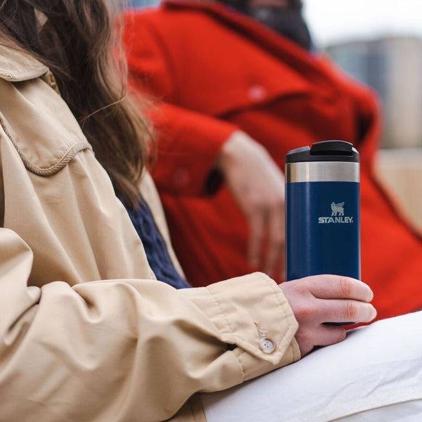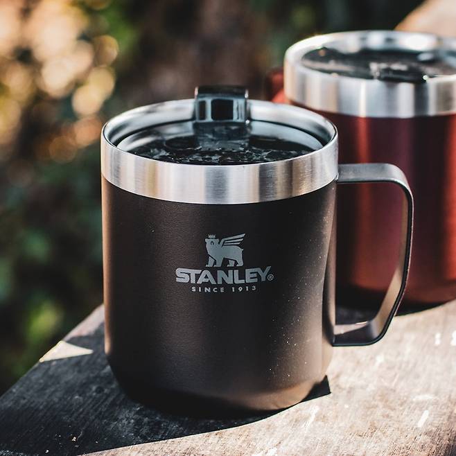 두 번째는 Mug 타입이다. 이름 그대로 머그잔 형태의 제품으로, 주로 사무실이나 책상 위에서 음료의 온도를 일정하게 유지하는 데 최적화되어 있다. ‘Trigger-Action’이라는 별칭으로 불리기도 하는데, 이는 버튼을 눌러 음료를 간편하게 마실 수 있는 구조에서 비롯된 이름이다. 용량은 354㎖, 709㎖ 등으로 나뉘며, 캠핑이나 아웃도어에서는 컵 대용, 사무실에서는 차가운 음료를 오랫동안 유지하며 마시는 용도로 자주 활용된다. 구조가 비교적 단순한 덕분에, 스탠리의 거의 모든 라인업에서 Mug 타입 제품을 만나볼 수 있고, 가격 역시 다른 형태에 비해 상대적으로 합리적인 편이다.
