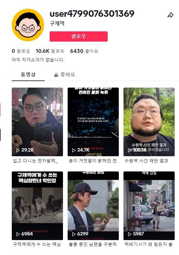 23일 현재 구제역의 틱톡을 검색하면 유튜브로 수익 창출이 중단된 지난 15일을 시작으로 12개의 영상이 올라가 있다.