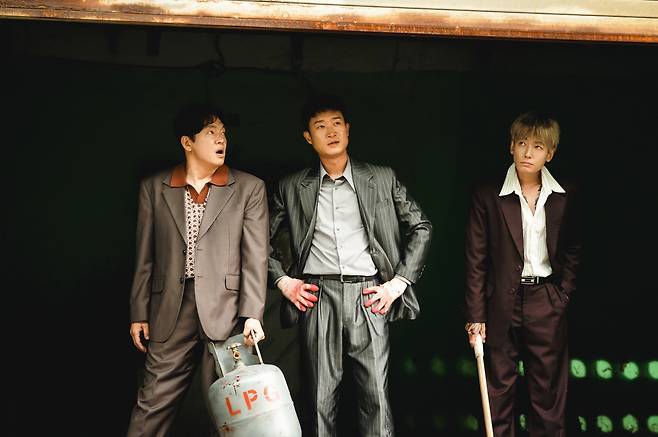 ‘강표’(정경호)는 목검을, ‘판호’(박지환)가 가스통을 이용해 상대 조직원들과 사투를 벌이는 모습은 세 사람의 서로 다른 액션 스타일과 다채로운 매력을 엿볼 수 있어 기대감이 증폭된다.