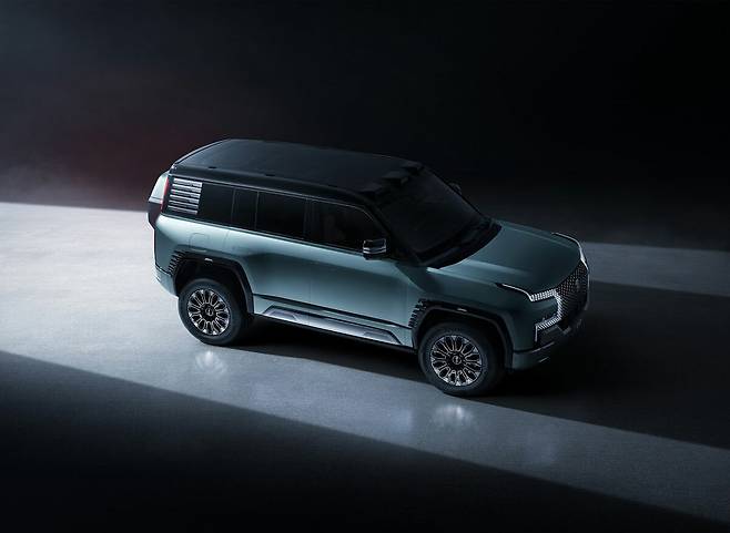 후면부 디자인도 일반적이지 않다. D-필러 부분에 ‘ㄴ’자 형태로 조명을 배치했으며, 하단 패널에 ‘ㄱ’자형 램프와 마름모꼴 형태의 작은 조명들로 채웠다. 8각형의 스페어타이어 커버를 비롯해 범퍼도 각진 형태를 갖는다.