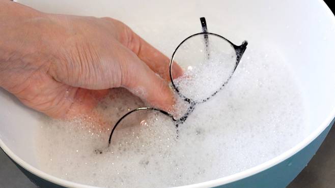 2. 비눗물에 안경 닦기