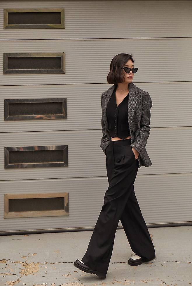 체크 핀턱 와이드 팬츠와 함께 매치해