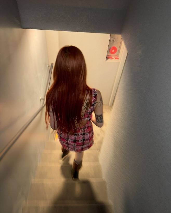 백예린은 핑크 체크 백리스 미니원피스를 착용해 사랑스럽고 세련된 분위기를 자랑했습니다.