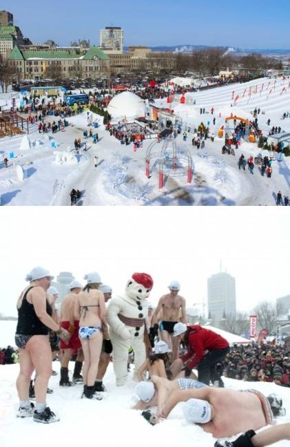 또 축제의 하이라이트인 스노 배스는 미리 신체검사를 통과한 후 영하 20℃의 눈밭에서 뒹굴며 목욕하는 행사라 행사에 참가하는 사람과 보는 사람 모두가 즐거워합니다. 그 외에도 얼음으로 만든 이글루 속에서 아이스와인가 커피를 즐기며 겨울을 만끽할 수 있습니다.