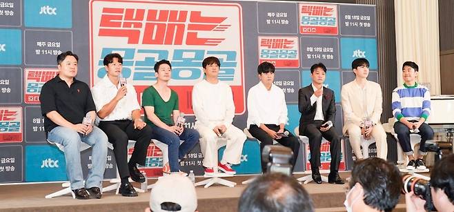 2일 오후 서울 서초구 잠원동 더 리버사이드 호텔 몽블랑홀에서 JTBC 새 예능 '택배는 몽골몽골'(연출 김민석 박근형/작가 노진영) 제작발표회가 진행됐다. 김종국, 장혁, 차태현, 홍경민, 홍경인, 강훈, 김민석 PD, 박근형 PD가 참석했다.