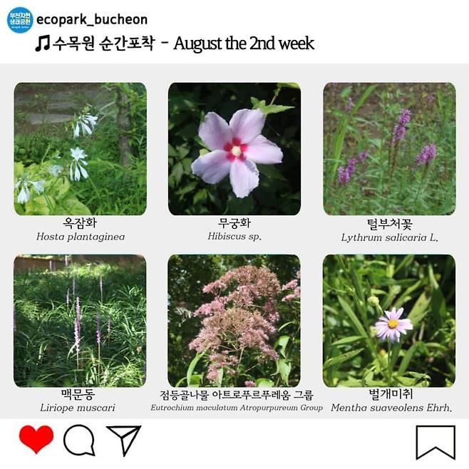 토피어리, 암석원, 붓꽃원, 숙근초화원 등 구역별 특징이 분명한 식물 전시도 강점이다. 특히 8월에는 수생식물과 계류 주변 식생이 가장 풍성하게 자라나는 시기로, 시기적 절정에 해당한다.