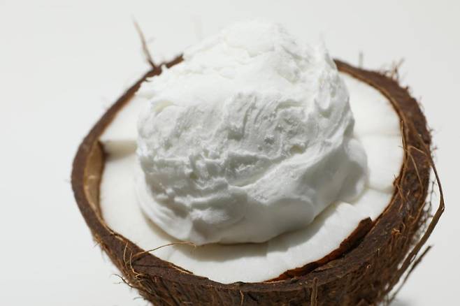코코넛 껍질을 용기처럼 사용하고 그 안에 코코넛 아이스크림과 과육을 함께 담아 먹습니다. 열대과일, 옥수수, 시리얼 등 야무진 토핑을 얹어 먹는 야시장 디저트!
