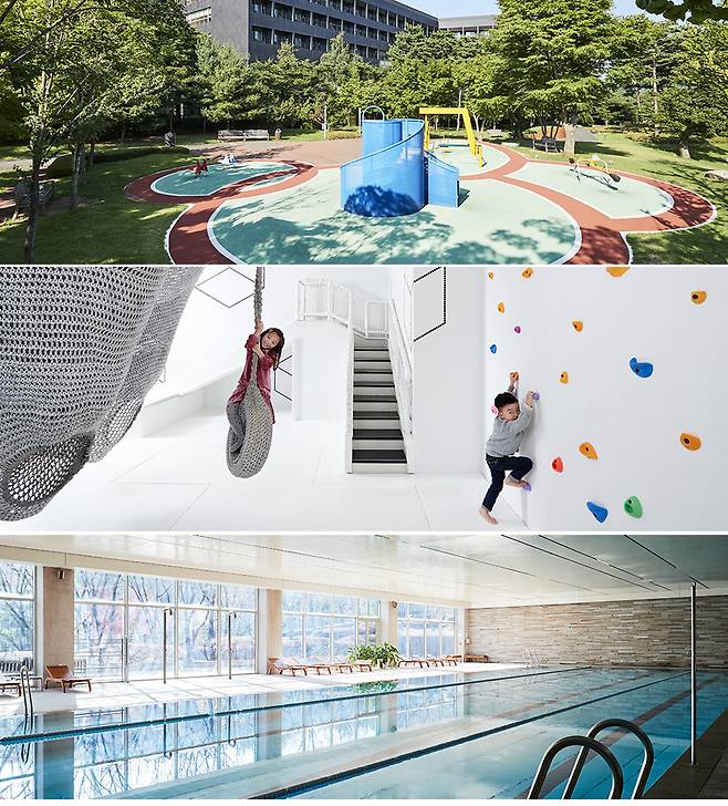 아기와 동반 가능한 수영장부터 볼풀과 미끄럼틀, 클라이밍 등의 시설을 갖춘 키즈룸, 한적하게 걷기 좋은 산책로와 정원까지 준비되어 있다.