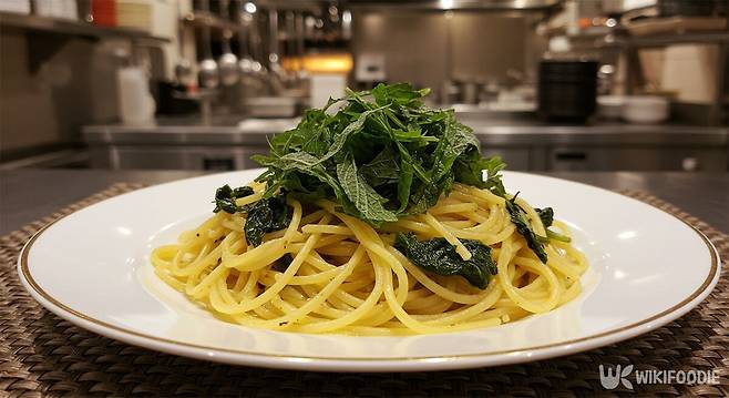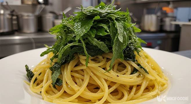 깻잎의 향긋함과 간장의 짭조름한 감칠맛, 올리고당의 단맛이 어우러져 입맛을 자극한다. 여기에 기호에 따라 고춧가루를 뿌리거나 참기름을 살짝 더하면 풍미가 배가된다. 파스타라는 서양 요리에 깻잎과 간장을 접목한 조합이지만, 오히려 익숙한 밥상 위 반찬 같은 느낌으로 다가온다.