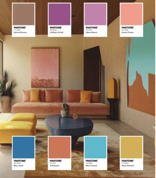 첫번째 팔레트는 유니크한 컬러가 생동감을 더해주는 컬러 팔레트다. 이번에 소개하는 팔레트 중 가장 개성 넘치는 팔레트인데, 모카무스 브라운을 포함한 3~4가지 컬러를 사용해 유니크한 공간을 연출할 수 있다.