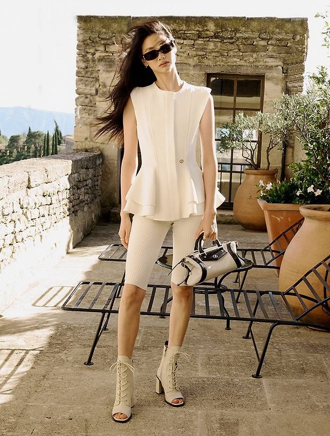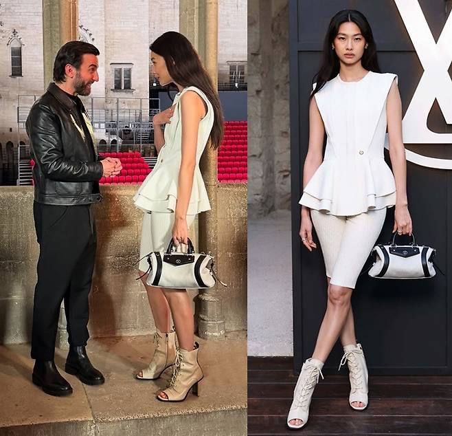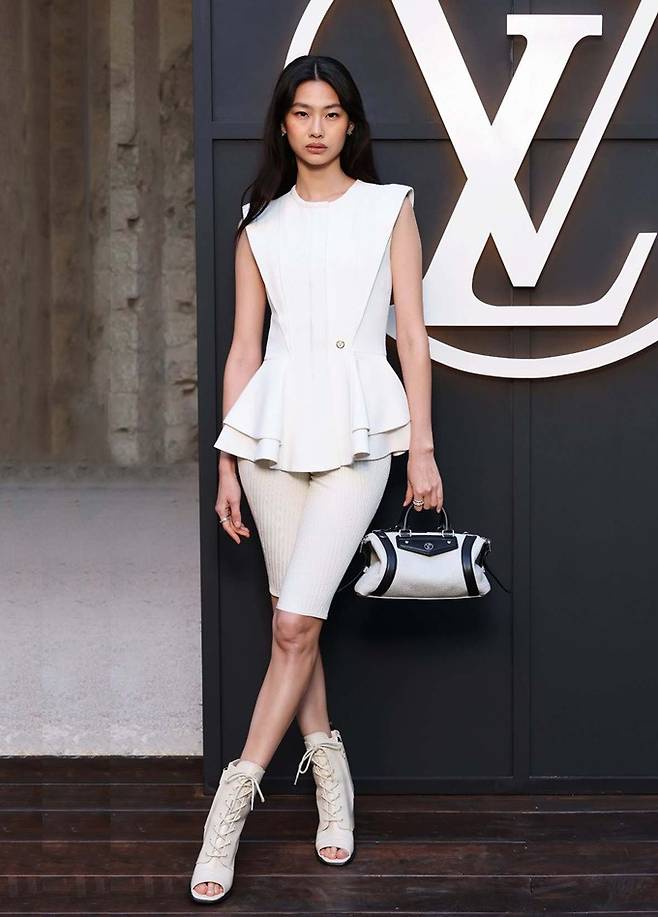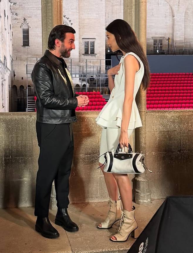 이날 정호연은 테일러드 민소매 베스트와 니트 버뮤다 팬츠를 매치한 구조적인 버뮤다 슈트룩으로 니콜라 제스키에르의 환대를 받으며 존재감을 발휘했다.
