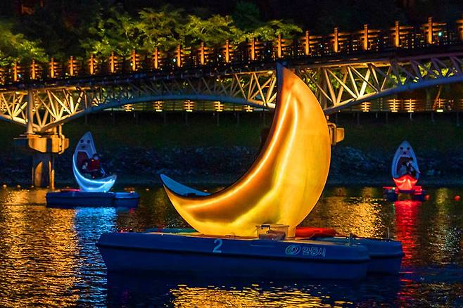 보름달 모양의 작은 보트를 타고 안동호를 천천히 누비며 월영교를 다른 각도에서 감상할 수 있는 특별한 경험입니다.
