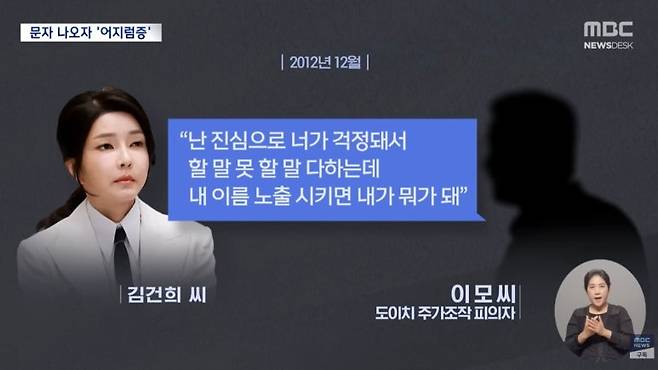 2012년 12월 나눈 카톡과 문자 내용을 보면 이준수 김건희의 관계는 매우 밀접한 것이 확인되는데요. 두 사람은 서로 편하게 반말을 하는 사이로 확인됐습니다.