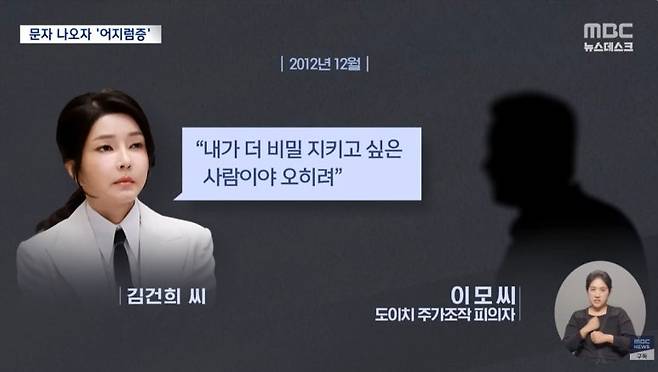 이 씨는 김 여사에게 "난 진심으로 너가 걱정돼서 할 말 못 할 말 다 하는데 내 이름 노출 시키면 내가 뭐가 돼"라고 말했고, 이에 김 여사는 "내가 더 비밀 지키고 싶은 사람이야 오히려"라고 답했습니다. 편하게 반말을 주고받고, 속이야기까지 스스럼없니 하는 사이라는 주장이 해당 문자 내용이 공개된 후 제기되기 시작했습니다.